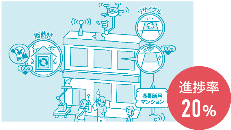 武蔵野大学工学部と共同で原状回復時のビニールクロス削減によるCO2削減量を試算。当社の取り組みに留めず広く広報し、業界全体で取り組んでまいります。
